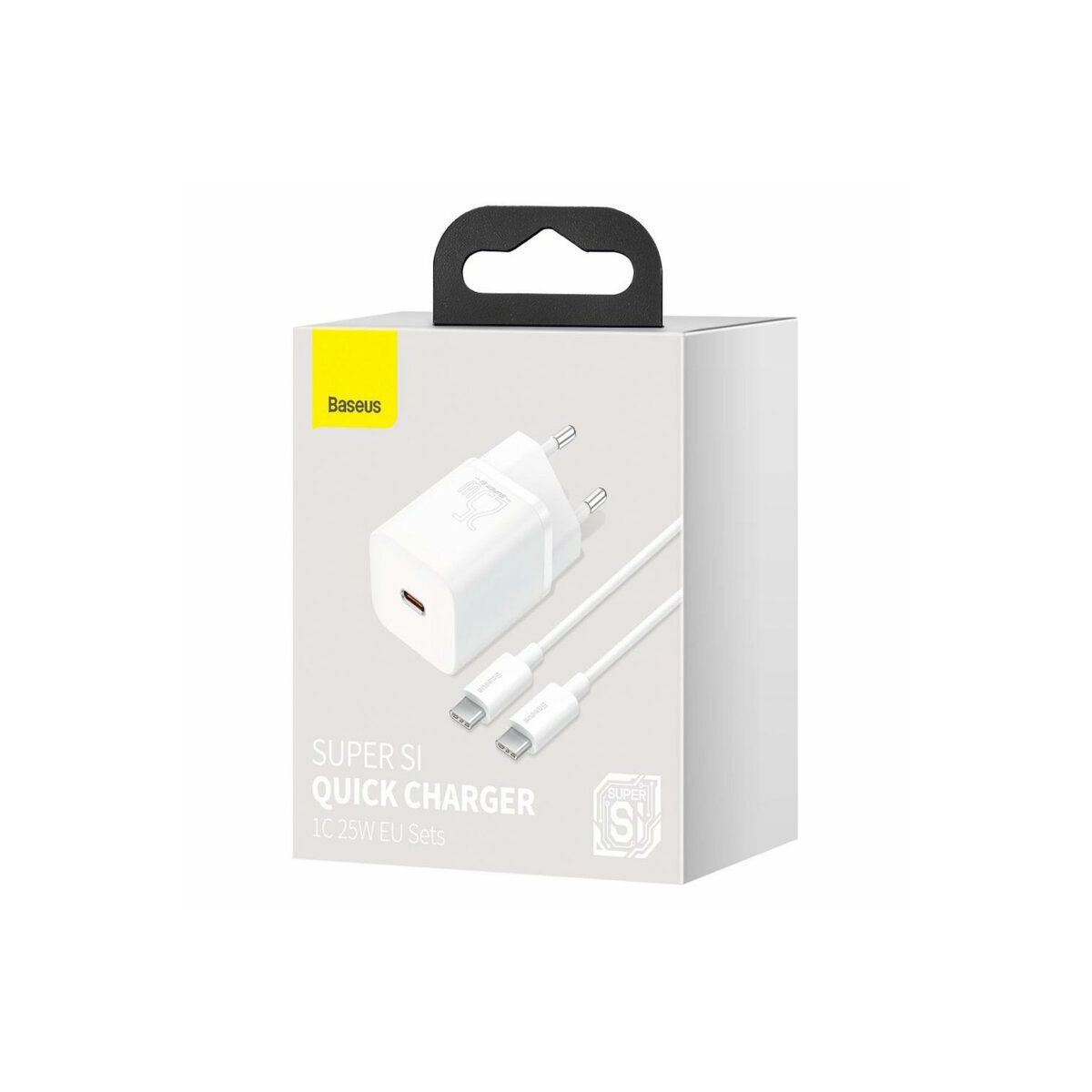 BASEUS hišni polnilec USB-C Super Si Quick 25W + kabel USB-C na USB-C, belBASEUS hišni polnilec USB-C Super Si Quick 25W + kabel USB-C na USB-C, bel