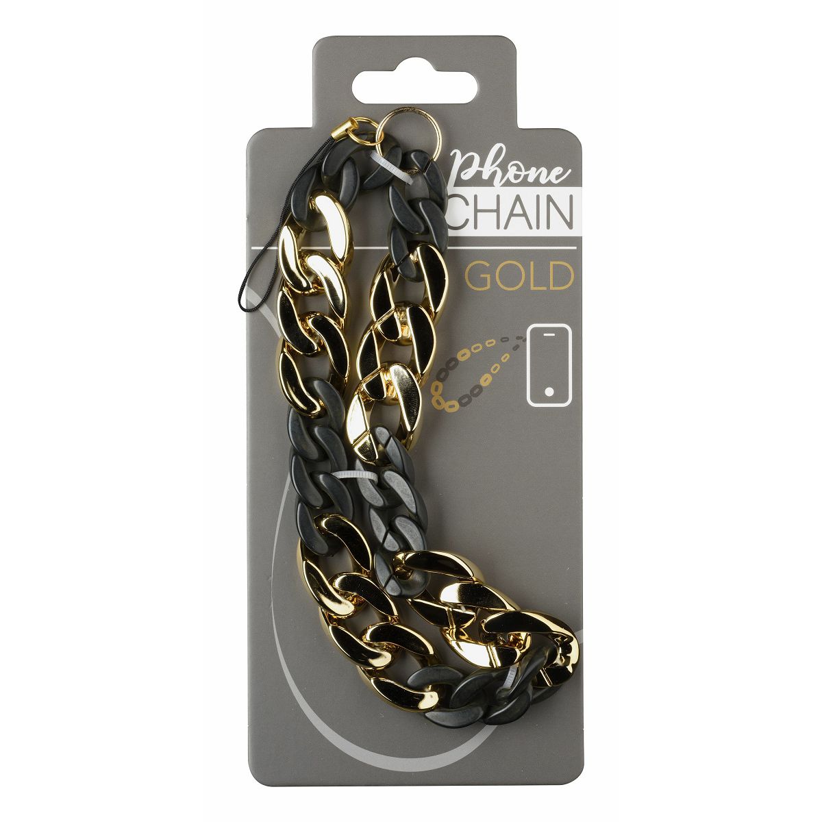 PHONECHAINGOLD je dodatek za vaš pametni telefon, veriga v videzu kovine, z dodatki zlate. Nepogrešljiv in trendovski dodatek, ki ga je zaradi praktične najlonske zanke mogoče pritrditi na ohišje.
