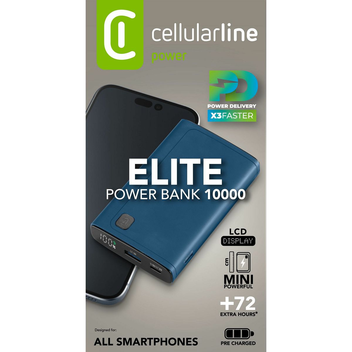 ELITE 10000 je opremljen z LCD zaslonom, ki prikazuje podatke o odstotku preostale napolnjenosti. Zasnovan je z vrhunskim videzom, kompaktnimi merami in izjemno lahkostjo, zaradi česar je powerbank hkrati praktičen in eleganten.