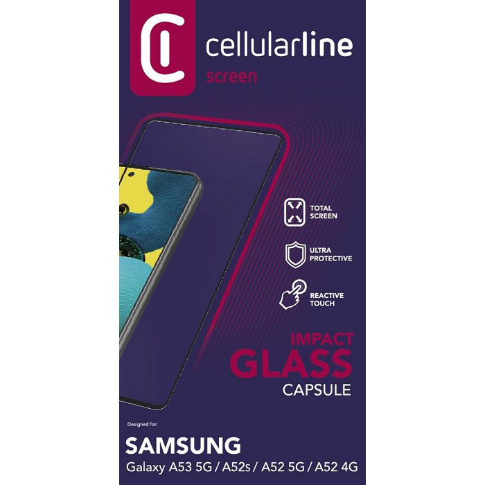 CellularLine zaščitno steklo CAPSULE, Samsung Galaxy A52 4G / A52 5G / A52s / A53 5G, črno