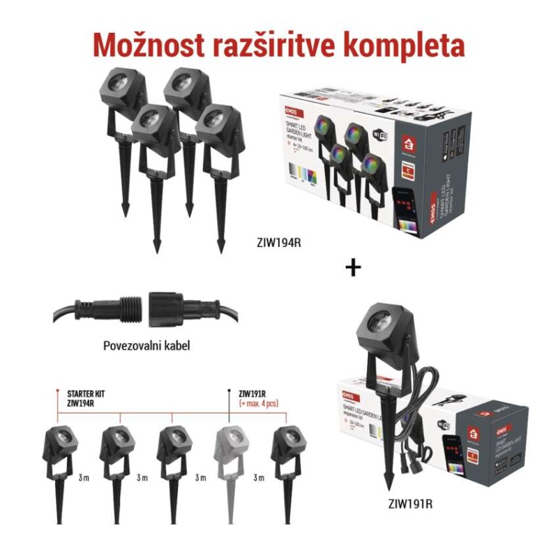 aplikacijski jeziki: EN, CZ, SK, PL, DE, HU, SI, FR, + 60 drugih jezikov|barva ohišja: črna|barva svetlobe: topla bela–hladna bela|barvne nastavitve (RGB): da|dolžina: 57 mm|dolžina dovoda: 1,5 m|energijski razred vključenega svetlobnega vira: G|garancijska doba: 2 leti|kategorija: EXCLUSIVE|kompatibilnost: EMOS GoSmart, Tuya, Lidl, Smartlife|linija: GoSmart|material difuzorja: plastika (PC)|material ohišja: plastika|največje število segmentov: 8|nastavitev barvne temperature: da|oblika: –|obvestila v mobilno aplikacijo: da|podprt OS: iOS, Android|potemnitev: da|prenosna frekvenca: 2,4 GHz (IEEE 802.11b/g/n)|prihodna moč: 1,5 W|prodajna embalaža: 1 kos, škatlica|protokol: WIFI + BLE|RGB digital: da|širina: 57 mm|število segmentov: 1|število vklopnih ciklov: –|svetlobna učinkovitost: 66 lm/W|svetlobni tok: 100 lm|tehnologija: LED|temperatura kromatičnosti: 3 000–6 500 K|upravljanje z glasovnimi pomočniki: da (Amazon, Alexa, Google Assistant)|vhodna napetost: 200–240 V~/50 Hz|višina: 260 mm|vključen vir svetlobe: #|zaščita: IP65|življenjska doba: 20 000 ur