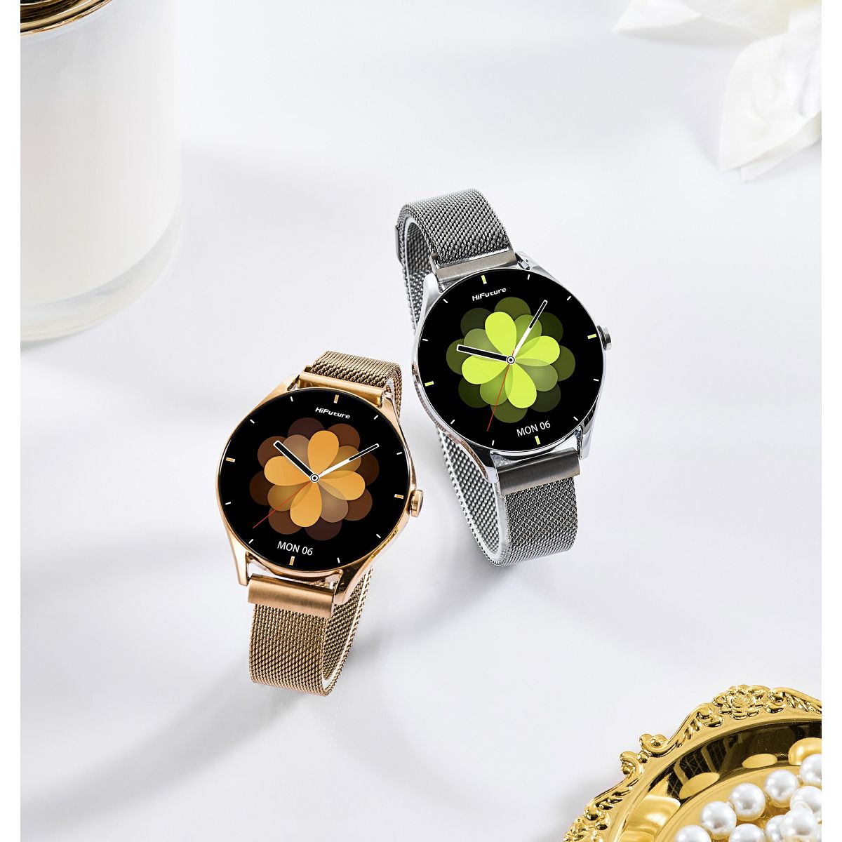 HiFuture AURA 2 je elegantna pametna ura, ki združuje ženstveno estetiko in sodobne funkcije, da postane več kot le modni dodatek – je spremljevalka v vsakem trenutku. Z 1,32-palčnim AMOLED zaslonom in ukrivljenim sferičnim steklom osvetli tvoj slog z barvami, ki izstopajo. Dual-Core procesor omogoča gladko delovanje, medtem ko opcija brezžičnih klicev pomeni, da lahko brez težav sprejmeš klic kar z zapestja. AURA 2 skrbi tudi za tvoje zdravje – spremlja srčni utrip, raven kisika v krvi (SpO2), spanje in tvoje vsakodnevne aktivnosti, saj podpira več kot 100 športnih načinov. Z zdravstvenimi funkcijami, 1 ATM zaščito proti vodi, do 7 dni avtonomije in sofisticiranim dizajnom v črni, srebrni ali zlati barvi je AURA 2 popolna izbira za tiste, ki želijo združiti stil, funkcionalnost in udobje. Ura ima kovinski in slikonski pašček.