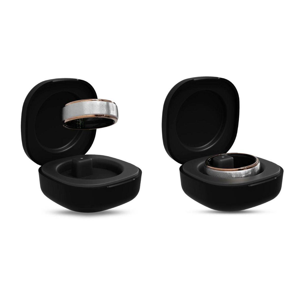 • Polnilno ohišje (charging case), ki omogoča 5-kratno polnjenje prstana, kar skupaj lahko pomeni do 50 dni uporabe, odvisno od frekvence meritev in dejavnosti.