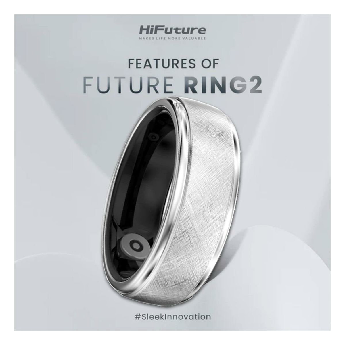 Future Ring2 je več kot le pripomoček – je modni dodatek, pametni spremljevalec in okno v tvoje zdravje. Z barvo, kot je titanium srebrna, ter različnimi velikostmi, se estetsko prilega tvojemu stilu in prstom.