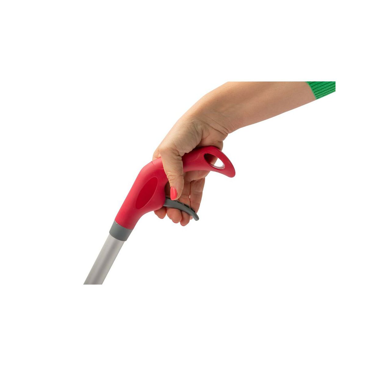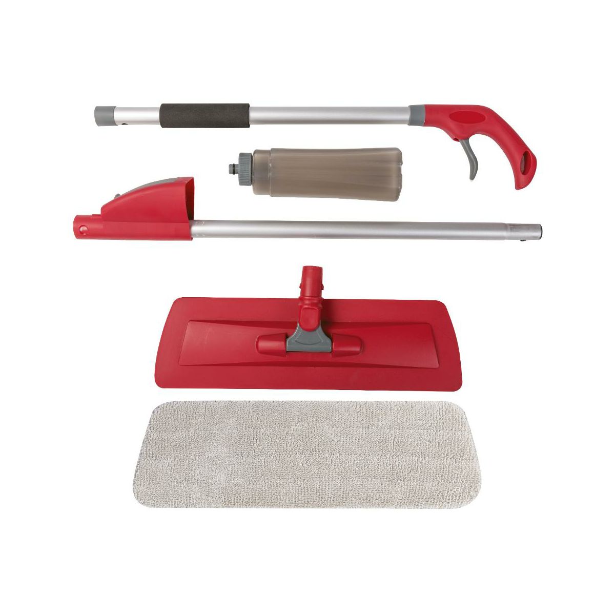 Ta priročen mop z vgrajenim razpršilcem omogoča hitro čiščenje vseh vrst trdih talnih oblog – dovolj je, da napolnite rezervoar z vodo ali čistilnim sredstvom, nato pa s pritiskom na gumb na ročaju enostavno razpršite po tleh in obrišete.