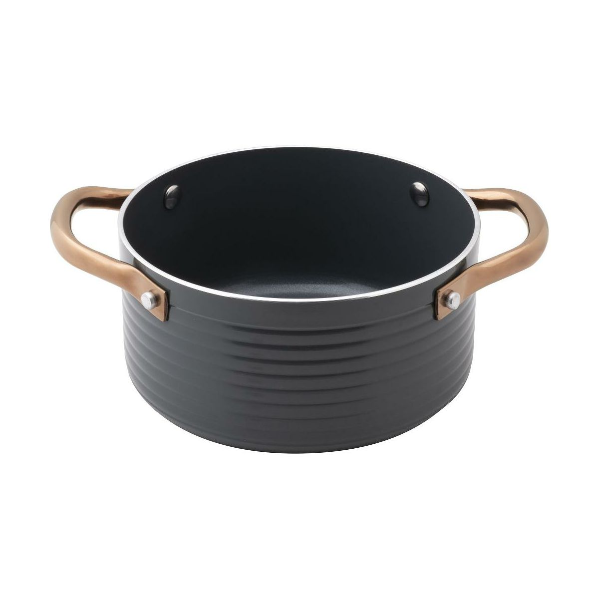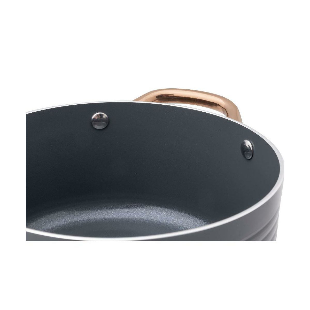•Trpežen aluminij z nelepljivo površino: Lonec je izdelan iz visoko kakovostnega aluminija, ki omogoča hitro in enakomerno porazdelitev toplote po celotni površini. Notranja nelepljiva prevleka preprečuje prijemanje hrane in omogoča kuhanje brez odvečnega olja.