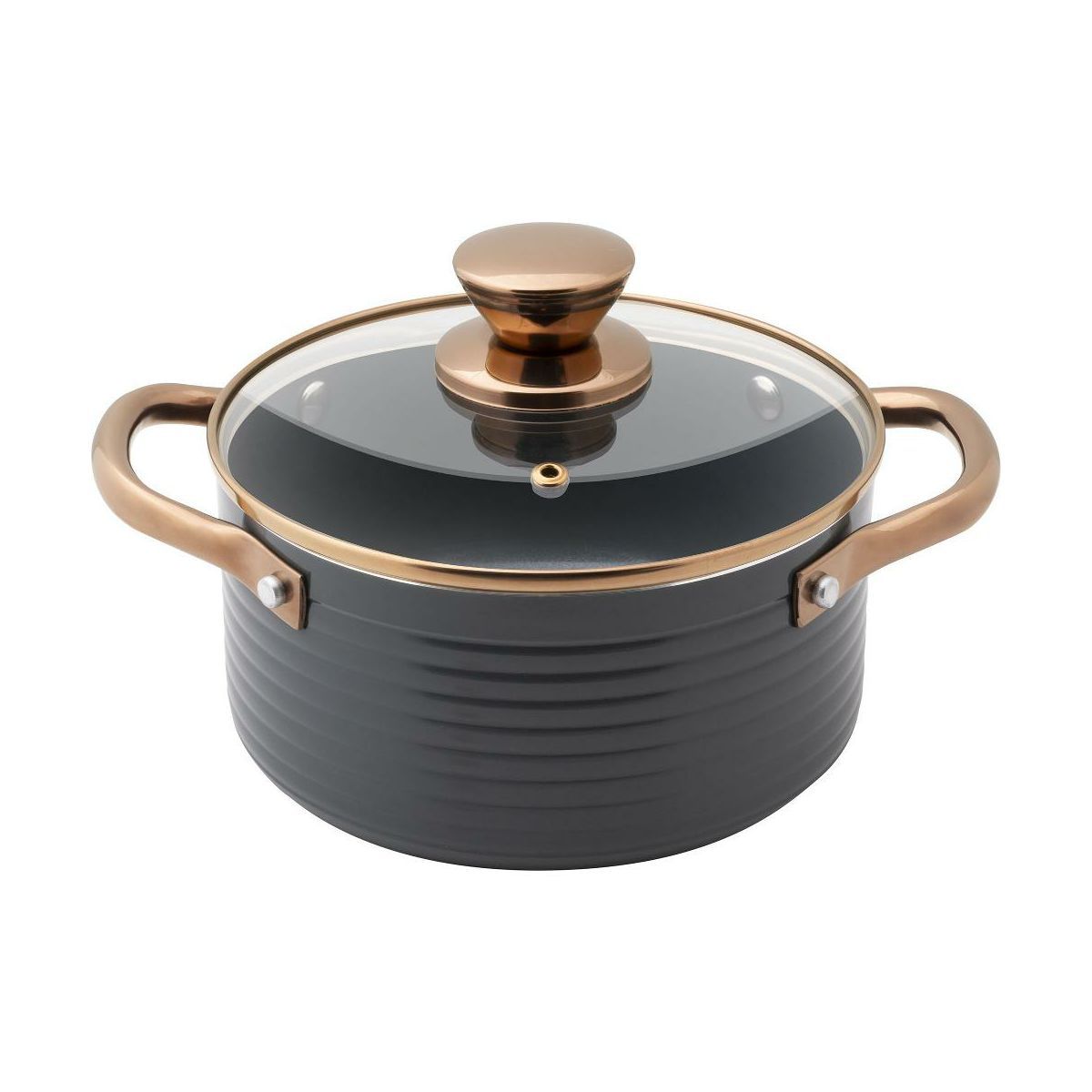 •Trpežen aluminij z nelepljivo površino: Lonec je izdelan iz visoko kakovostnega aluminija, ki omogoča hitro in enakomerno porazdelitev toplote po celotni površini. Notranja nelepljiva prevleka preprečuje prijemanje hrane in omogoča kuhanje brez odvečnega olja.