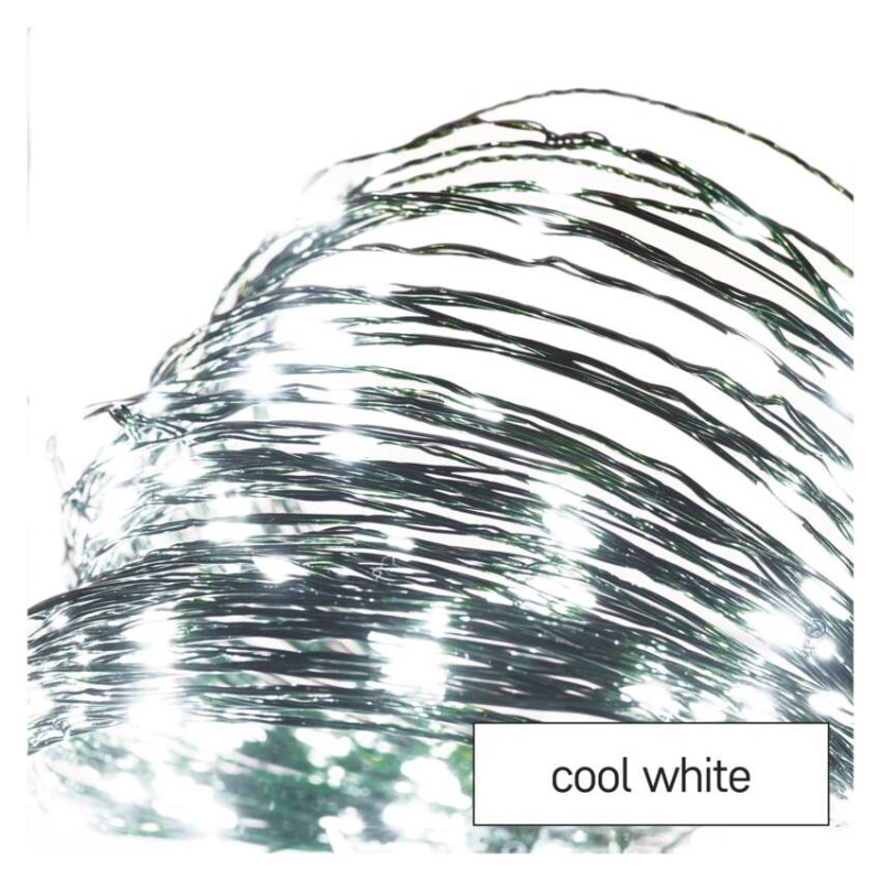 LED božična nano veriga zelena, 15 m, zunanja in notranja, hladna bela, časovnik