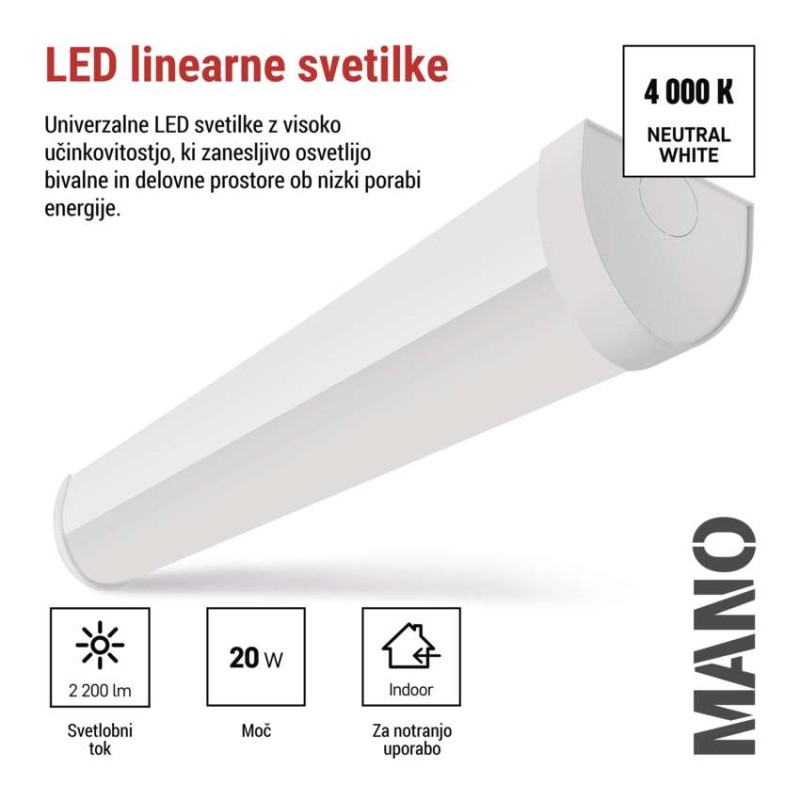 LED linearno svetilo MANO, 20W, nevtralno bela