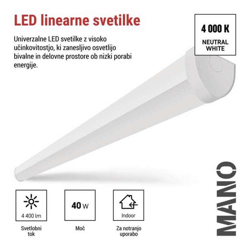 LED linearno svetilo MANO, 40W, nevtralno bela