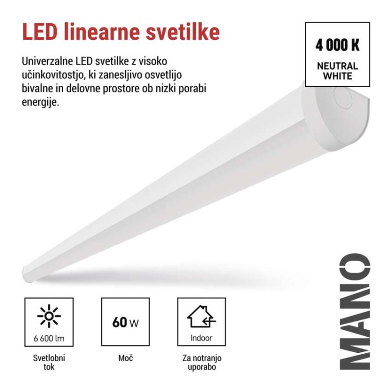 LED linearno svetilo MANO, 60W, nevtralno bela