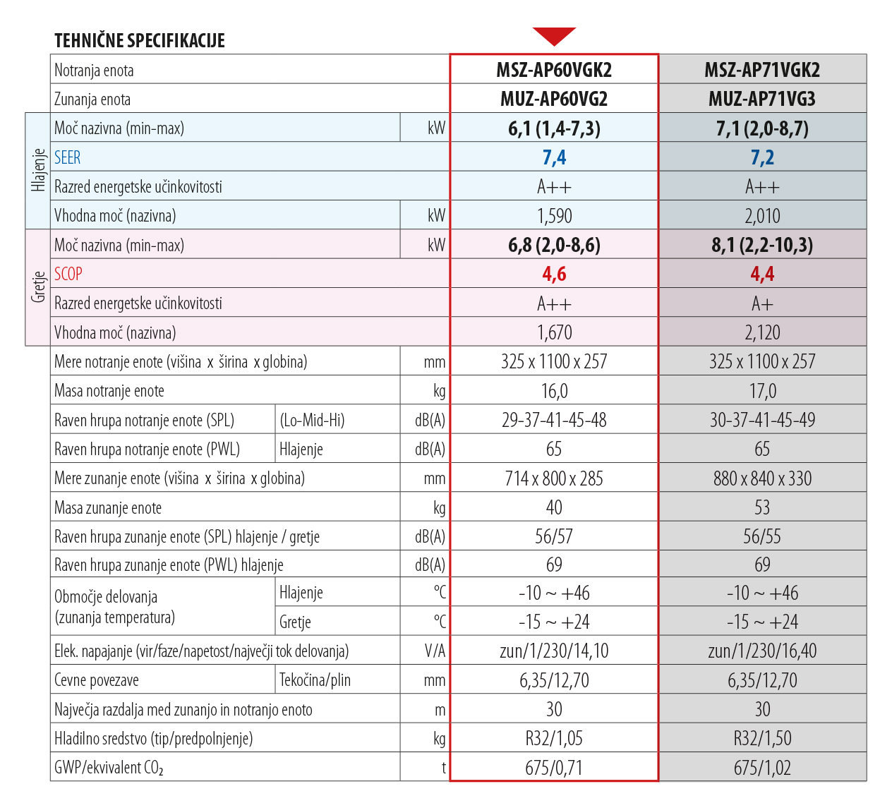 Kompakten in eleganten dizajn klimatske naprave MSZ-AP60VGK2/MUZ-AP60VG2, ki se prilega različnim stilom notranje opreme, neslišno delovanje ob najnižji ventilaciji in visoka energijska učinkovitost z možnostjo upravljanja sistema prek tedenskega časovnika so ključne prednosti najnovejšega okolju prijaznega modela. Lahko jo upravljate v oblaku, prek aplikacije MelCloud HOME. Vsebuje filter za čiščenje zraka »V-Blocking«, ki uničuje viruse, bakterije, alergene in spore.