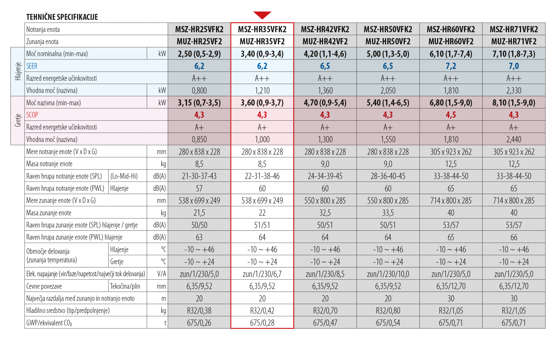 Mitsubishi klimatska naprava MSZ-HR35VFK2_MUZ-HR35VF2