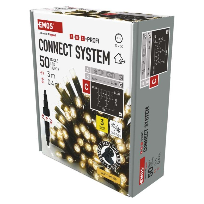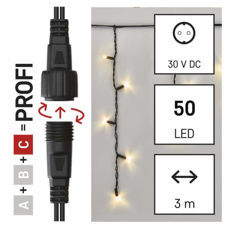 barva svetlobe: topla bela|barva žice: črna|daljinski upravljalnik: ne|dimenzije: 3 × 0,4 m|dolžina dovoda: 10 cm|funkcije: sveti|garancijska doba: 3 leta|izdelek: kapniki|izhodna napetost: ne navaja se|LED razmik: 10 cm|material: guma|možnost povezave: da|oblika: klasičen|prihodna moč: max. 4 W|prodajna embalaža: 1 kos, škatla|programska ura: ne navaja se|število LED: 50|tip napajanja: omrežni adapter (ni priloženo)|uporaba: zunanja in notranja|velikost LED: 7 mm|vhodna napetost: 30 V DC|zaščita: IP44|za višino drevesa: ne navaja se|življenjska doba: 10 000 ur