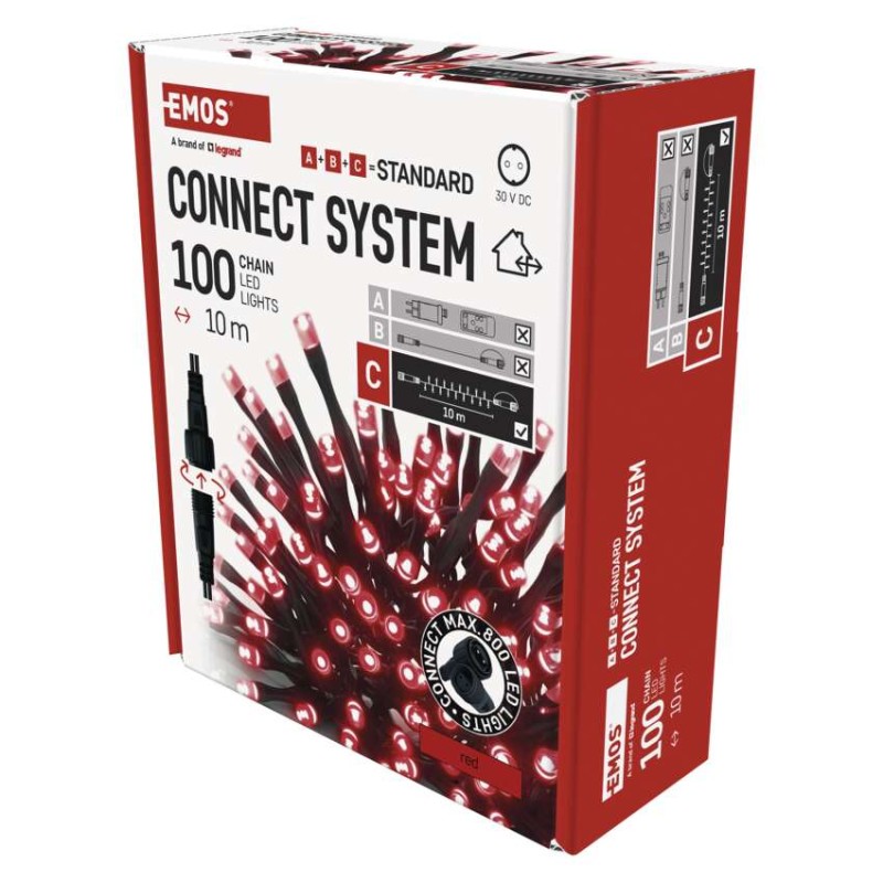 Standard LED povezovalna božična veriga, 10 m, zunanja in notranja, rdeča